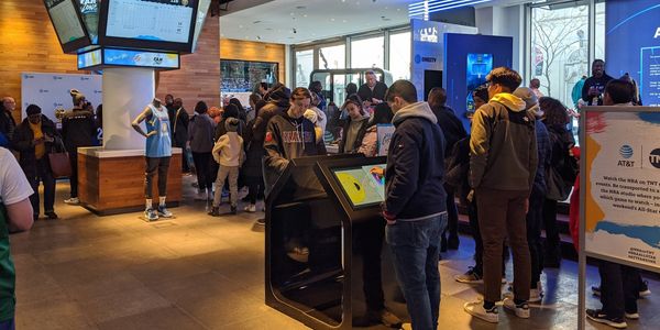 Pre-Production, Post Production, and integration of interactive NBA Sports Analyst experience media for TwentyFour7 where visitors were filmed behind a real desk and were composited live into a sports analysis segment of real NBA basketball games.